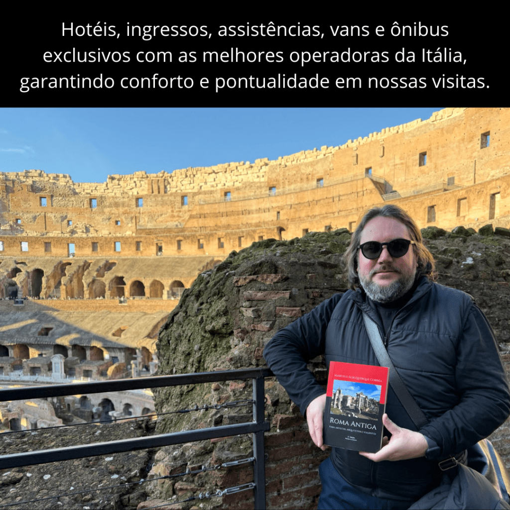 Em Roma, examinamos as camadas que constituem a cidade antiga, cristã e barroca. O Coliseu, o Fórum Romano e o Palatino introduzem a discussão sobre engenharia, monumentalidade e poder na Antiguidade. O ingresso integrado contempla esses sítios, e parte significativa das entradas já se encontra incluída no valor total da viagem. As visitas são acompanhadas de aulas, vídeos e ilustrações da Roma antiga em iPad, recurso metodológico voltado ao estudo das ruínas e dos fundamentos construtivos e urbanos do mundo romano.